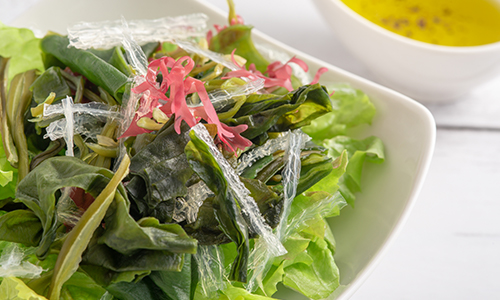 ワカメ、めかぶ、昆布、もずくなどたっぷりの海藻をさっぱりドレッシングで和えたサラダです。ヘルシーなのでダイエット中の方にもおすすめです。